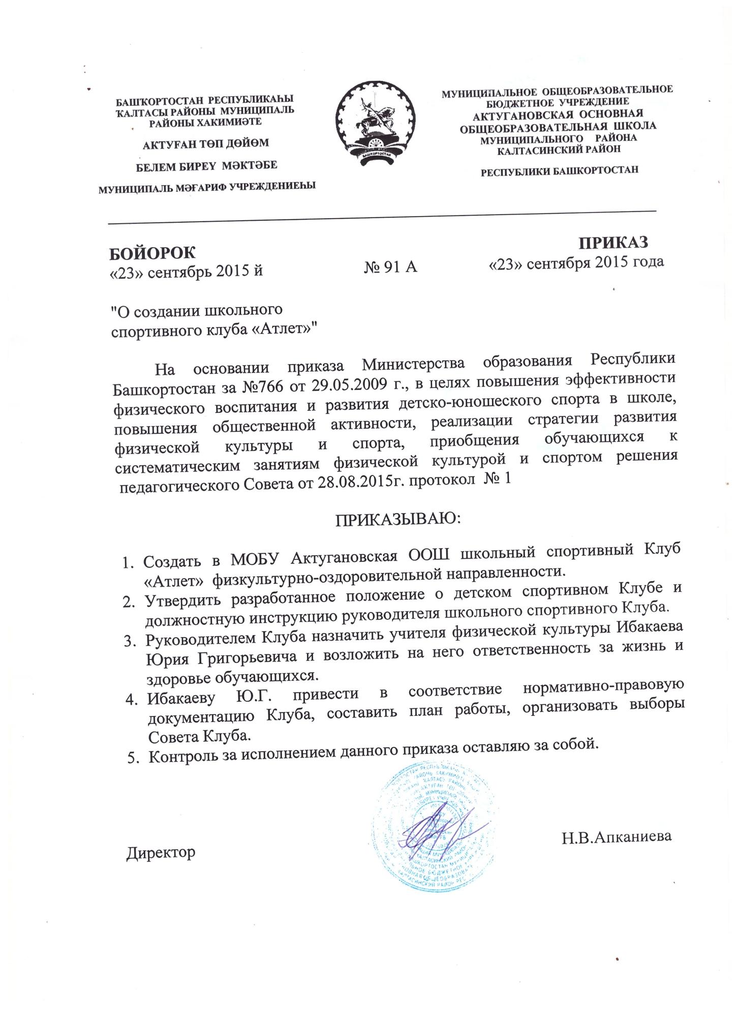 Приказ о ШСК Атлет